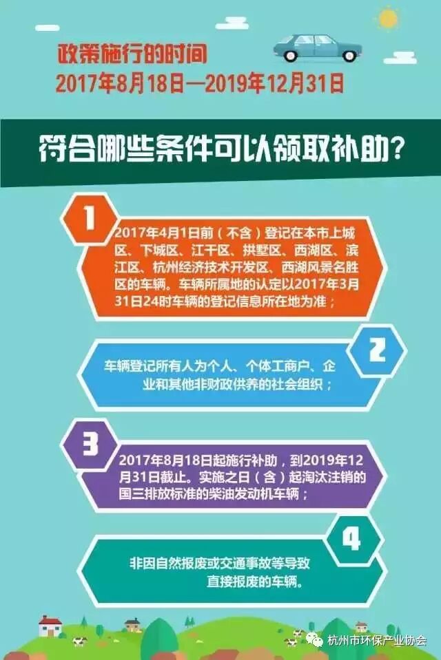 杭州市国三柴油车淘汰补助政策从今年8月18日起正式实施,至2019年12月31日结束。汽车排放的环保化是必然趋势,相信随着越来越多类似政策的出台,人们的出行方式将更加低碳环保。