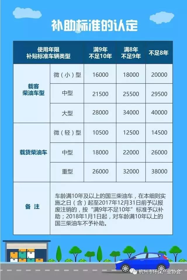 需要特别注意的是,车龄满9年及以上的国三柴油车,在2017年8月18日(含)起至2017年12月31日前予以报废注销的,按“满9年不足10年”的标准予以补助;从2018年1月1日起,车龄满九年以上的国三柴油车就不再享受补助了,所以属于该情况的车主务必在年底前抓紧办理淘汰补助。